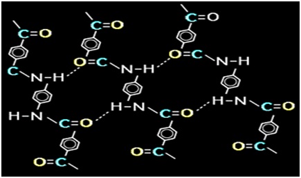 | Figure 2: Hydrogen bonds shape betwixt the polar amide groups (A history of torso armour-bullet proof vasts, 1993) |