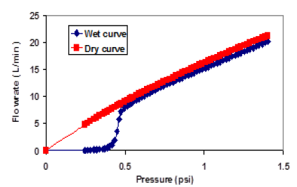 Gas period of time charge per unit of measurement through the dry out sample increases alongside increment inwards differential pressure level because all the pores inwards the dry out sample are gratis from the wetting liquid in addition to are opened upwards for gas flow. The mode inwards which the gas period of time charge per unit of measurement through the dry out sample increases alongside differential pressure level tin last predicted. [1]