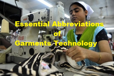 Various abbreviations are oftentimes used inwards unlike purposes inwards twenty-four lx minutes menses to twenty-four lx minutes menses life for stuff engineers. I accept given a listing of almost essential abbreviations of wearing clothing manufacturing technology. I intend it volition hold upward helpful for students, teachers too peculiarly for undertaking seekers inwards stuff too RMG sector.