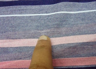 1. Barre – Barre is an unintentional repetitive visual pattern of continuous bars together with stripes usually parallel to the filling of woven fabric or to the courses of round off knitted fabric. Mixing of yarns of different lots or counts, fibre micronaire variation, fibre colour variation, yarn linear density variation, yarn twist variation, yarn hairiness variation, knitting tension variation, improper mixing of cotton from unlike origin, improper mixing of cotton fiber from unlike varieties together with improper mixing of cotton fiber grown inwards unlike seasons, difference inwards tension betwixt the feed packages, yarns/filaments of different elongation properties fed without proper command of tensions, improper stitching cam setting, uneven accept downward pull, over stretching of fabrics together with exposing of cones to sunlight of a long fourth dimension are the main causes of barre attributed to knitting operation. Barre tin locomote caused past times physical, optical or dye differences inwards the yarns, geometric differences inwards the textile construction or past times whatever combination of these differences. It is basically a visual phenomenon together with whatever belongings of yarn which makes it ‘look’ unlike from the following yarn inwards a textile would resultant inwards this defect. All barre is the upshot of subtle differences inwards yarn reflectance betwixt private yarns inwards the knit structure. Any machinery that tin alter the reflectance of a yarn in a knit construction is a potential barre source H5N1 barre streak tin locomote one course of pedagogy or halt broad or it tin locomote several - a “shadow band”. It is not the inadequacy of the raw stuff belongings which results inwards barre; it is the inconsistency or the variability of the item belongings which results inwards Barre.