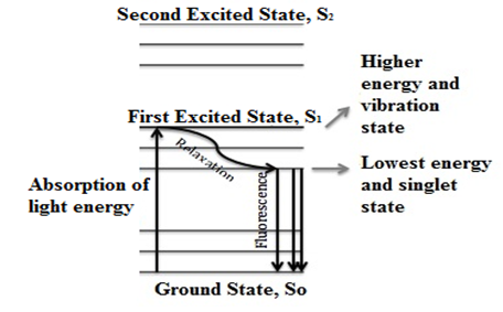 | Figure 1.3 Energy diagram of fluorescent materials illustrating the unloose energy transitions taking house within electronic orbitals (Re-drawn from Hubbe et al. 2008) |