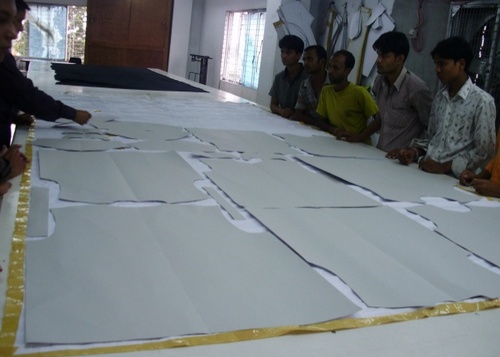 Marker is a thin paper which contains all the necessary pattern pieces for all sizes for a particular style of garments. It is made just before cutting and its purpose is to minimize the wastages. The width of the marker is equal to the width of the fabric and it should not be greater than the width of the fabric, i.e. fabric width is greater than or equal to marker width. The pattern pieces should be placed very carefully in such a way that it would minimize wastages.