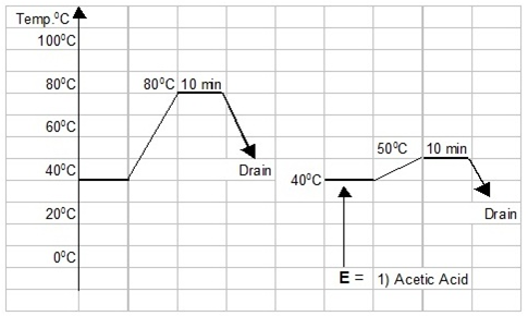 Potassium Permanganate (KMnO4) - 0.5% wof at cold for 30 minutes - to the same bath add Hydrochloric acid (35% conc.), 3 times the quantity of KMnO4 continue run for another 30 minutes. Then raise the temperature to 50°C and run for 30 minutes.